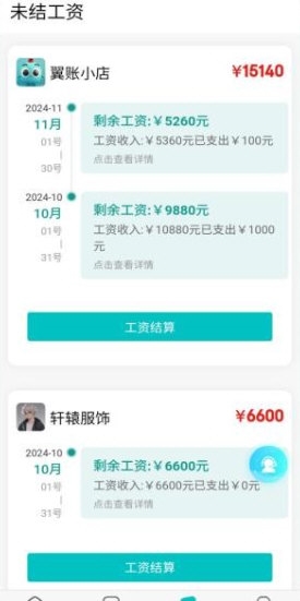 4、未结工资:汇总所有未结清账目,方便集中查看。
