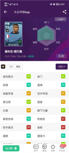 2、球员数据库主要提供:实况足球球员天梯排行榜;查看球员详细能力数值;设有球员评论区、投票区与视频分享区。