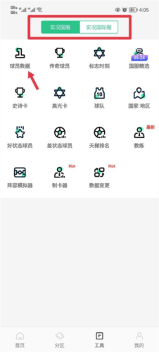 1、在工具界面选择国服或国际服,点击进入球员数据查询;