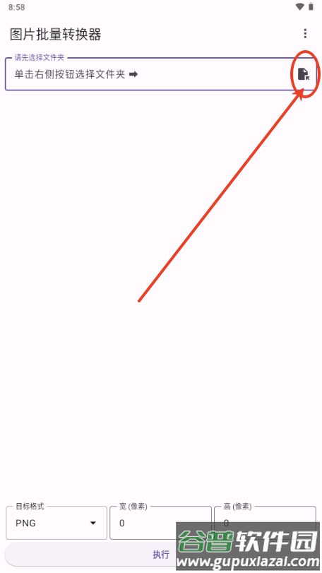 2、打开软件,点击界面右侧的按钮来定位并选择文件夹;