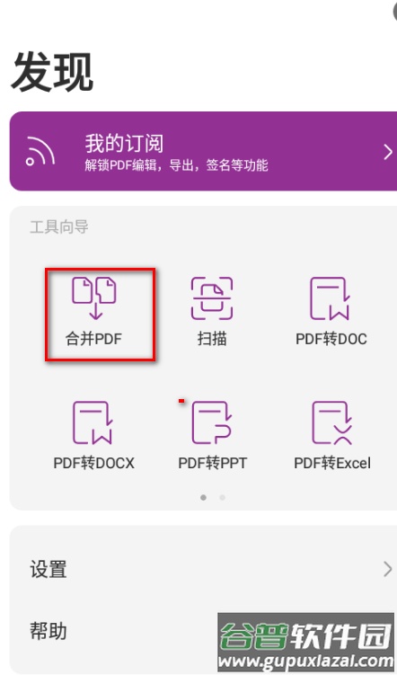 4、找到并点击合并PDF功能,随后选择需要合并的其他PDF文件;