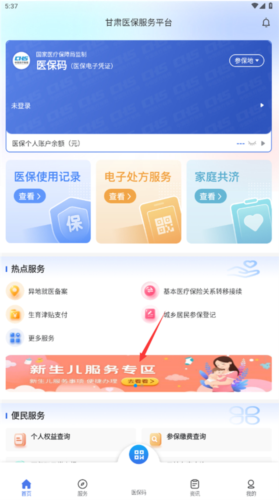 1、打开甘肃医保服务平台app,进入简洁的主界面,点击底部“我的”选项。