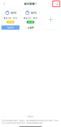 2、进入城市管理页面后,点击右上角的编辑按钮;