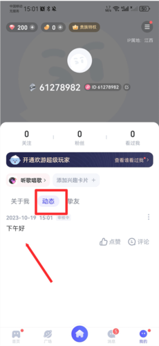1、打开欢游APP,点击右下角我的进入个人中心。