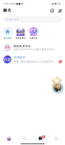 1、打开欢游应用,点击底部消息选项卡;
