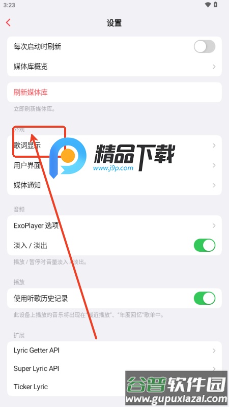 3、在设置中找到歌词显示选项;