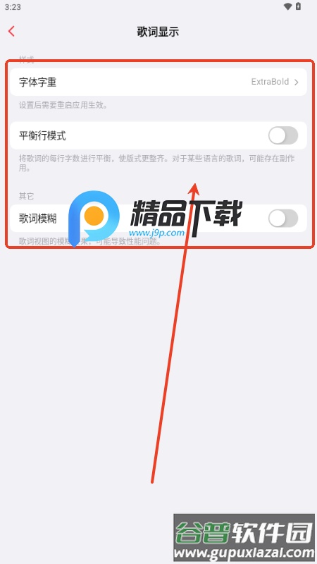 4、进入后即可根据个人喜好对歌词样式进行详细调整。