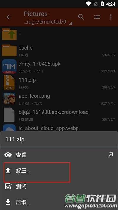 答:点击文件左侧图标选择多个文件,点击首个选中文件后从菜单选择压缩;设置好选项后确认即可。