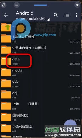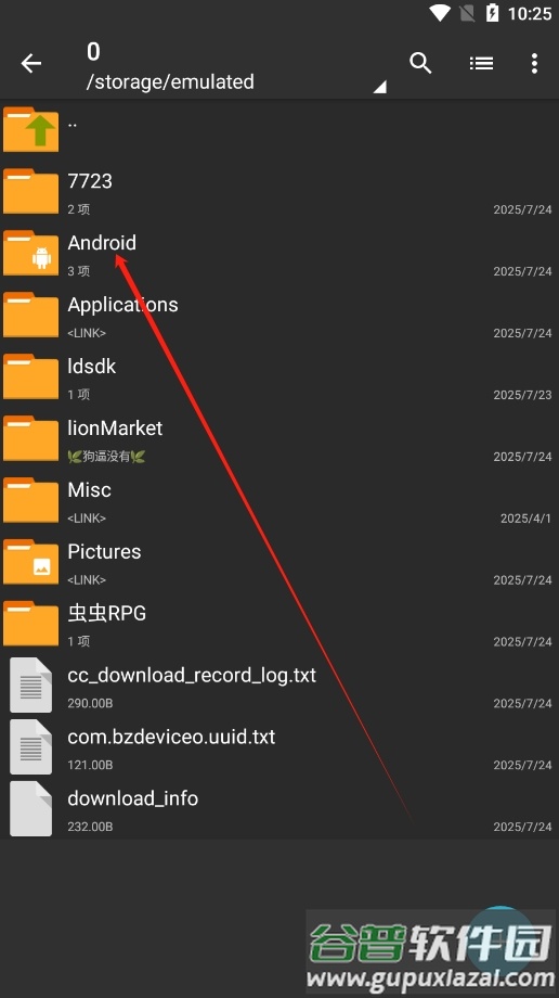 1、打开软件进入设备存储,找到android目录下的游戏文件。