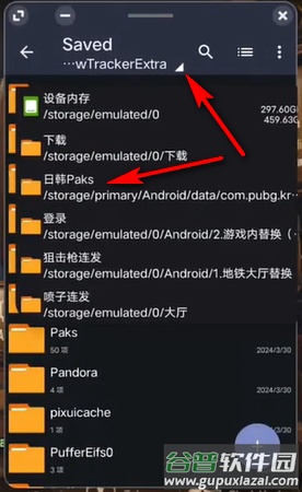 8、向下滑动找到paks文件夹。