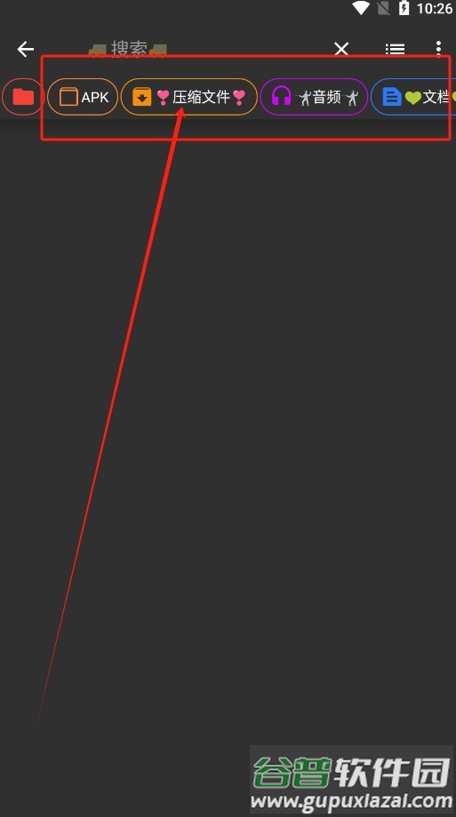 使用顶部搜索栏可快速定位APK、压缩包、音频及文档等文件。