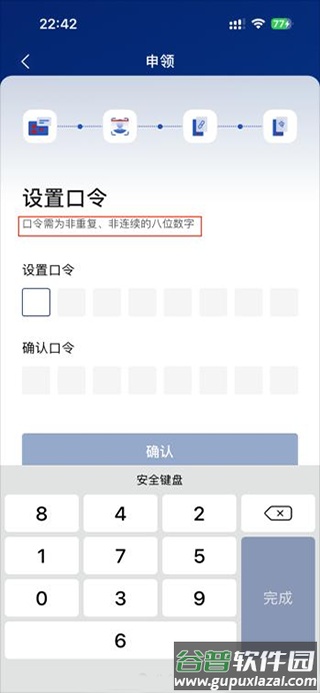 6. 设置口令,要求为非重复、非连续的八位数字;