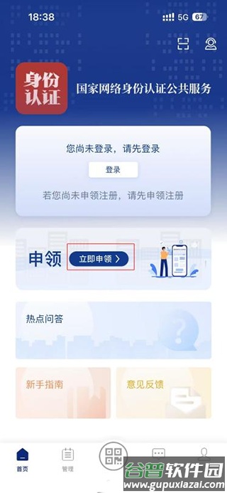 1. 打开软件,点击立即申领;