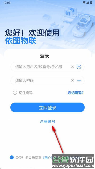 1、打开应用后,点击界面下方的注册账号入口。