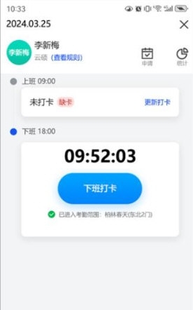 2、考勤打卡:基于定位功能实现员工考勤管理,记录上下班打卡数据。