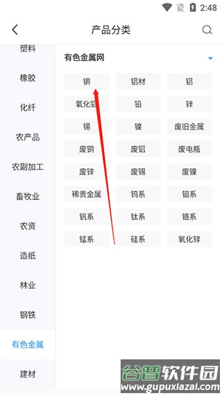 2、在菜单中找到有色金属分类选项,铜相关资讯就位于此分类下。