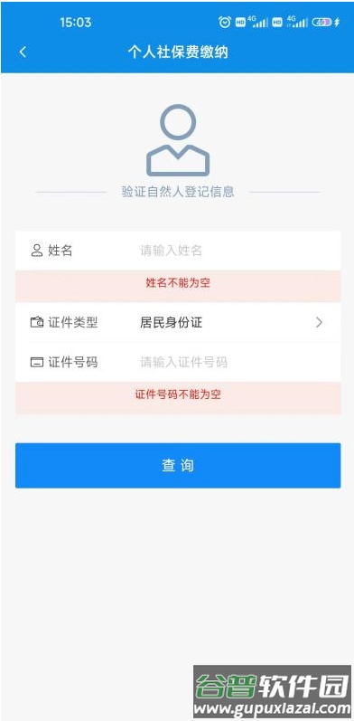 选择“个人社保费缴纳”输入姓名、证件号码点击查询按钮;