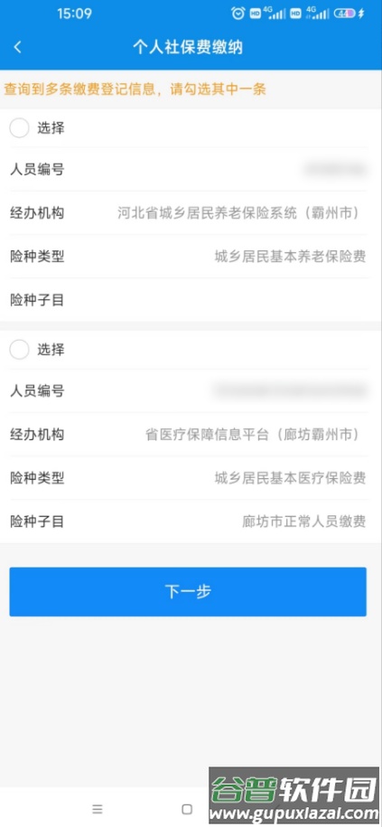 选择本次缴费险种,点击【下一步】查询应缴费信息;