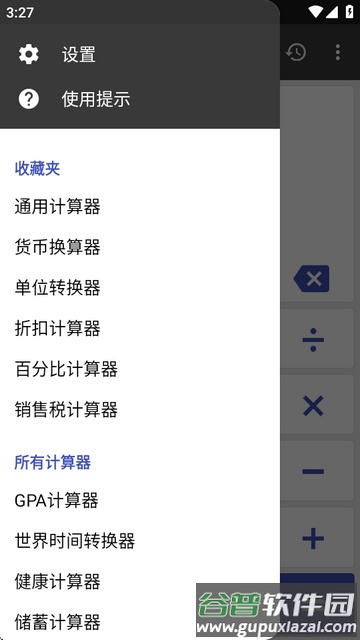 点击左上角汉堡菜单按钮,可使用货币换算器、单位转换器等附加功能。