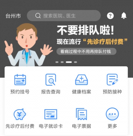 支持台州市内医疗机构预约挂号;