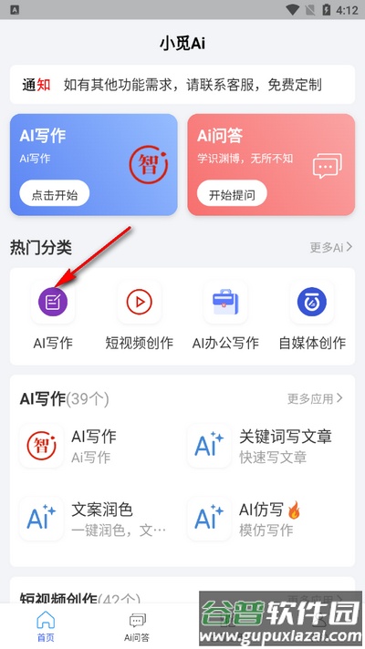1、启动软件进入主界面,点击AI写作按钮。
