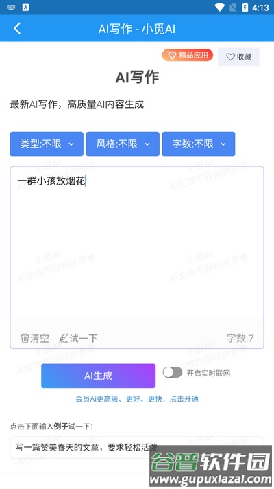3、功能全面:覆盖小说创作、广告文案、短视频脚本及故事编写等多种类型,适应不同场景的创作需要。
