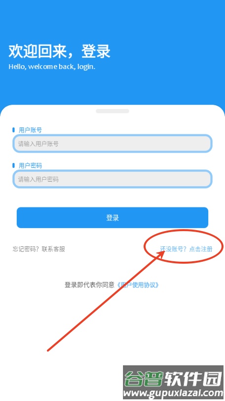 3、注册成功后返回登录页,输入刚才使用的账号信息;
