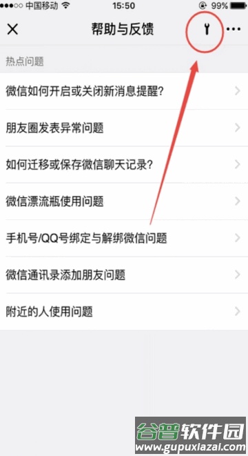 3、在帮助与反馈页面的右上角,可见一个修复工具图标。