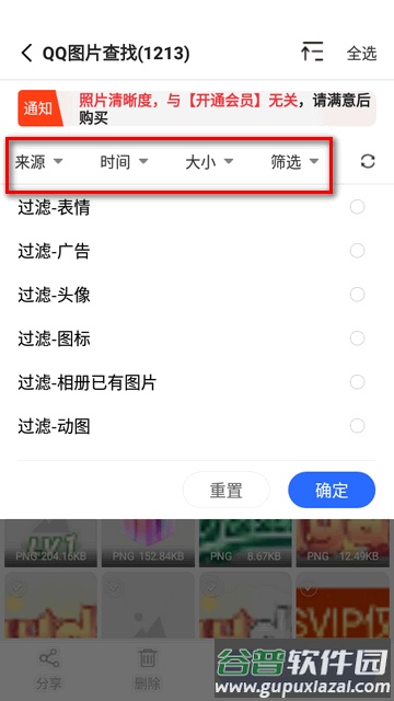 4、支持按照文件来源、生成时间或体积大小等条件进行筛选过滤。