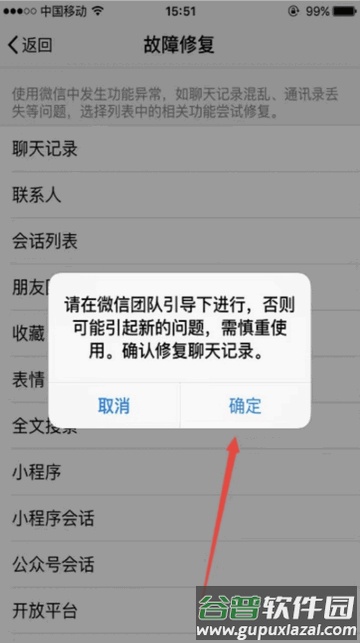 6、点击后系统将弹出提示框,此操作需谨慎使用,若非必要不建议尝试;若确定修复,请点击确认,修复完成后关闭微信并重新启动,被删除的聊天记录便有机会恢复。