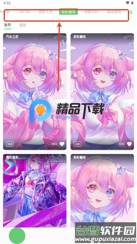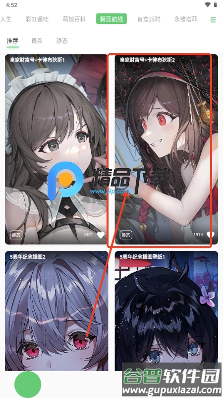 1、打开软件后,浏览并选择感兴趣的壁纸分类栏目;