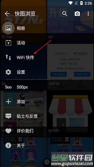 1、在软件主界面找到左侧功能列表中的wifi快传选项;