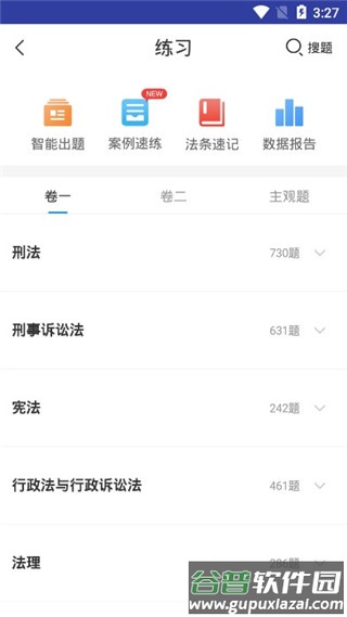 系统提供大量客观题与主观题,包含历年法硕考试真题,并按章节归类整理;主观题部分支持人工智能辅助评分,题库内容保持同步更新。