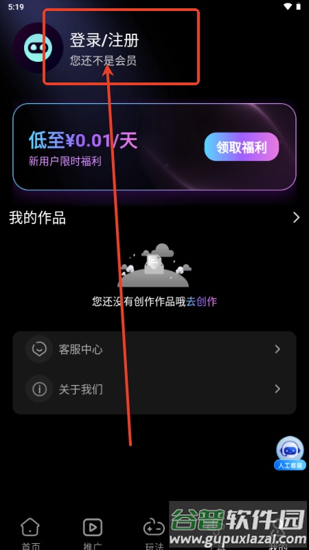 1、在应用内点击“我的”页面;