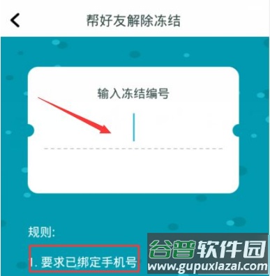 5、按提示绑定手机号,然后输入好友的冻结编号。