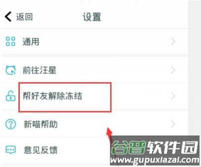 4、在设置功能列表中找到并点击帮好友解除冻结选项。