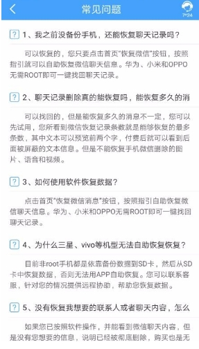 4、常见问题界面提供大量恢复过程中可能遇到的解答;