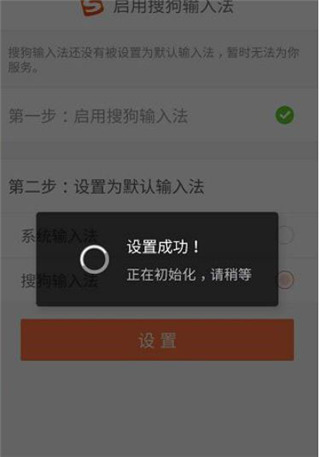 6、设置成功:完成上述步骤后,输入法即设置成功,并开始进行初始化。