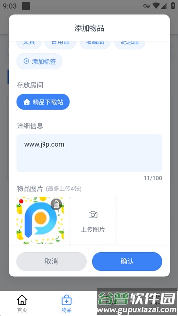 5、点击物品添加按钮,根据提示填写物品的名称、位置等信息。