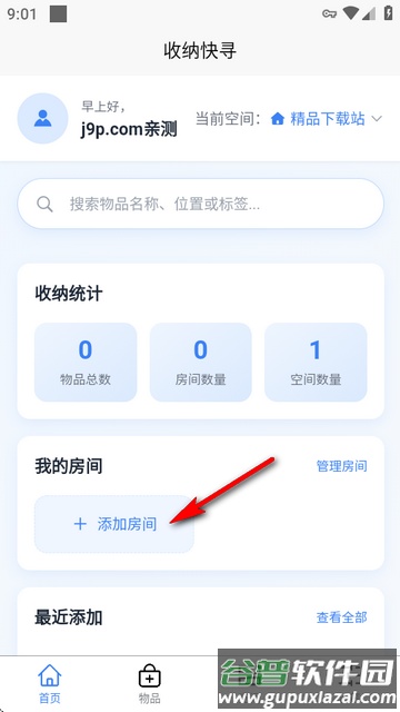 3、进入应用首页,点击添加房间开始创建收纳区域。