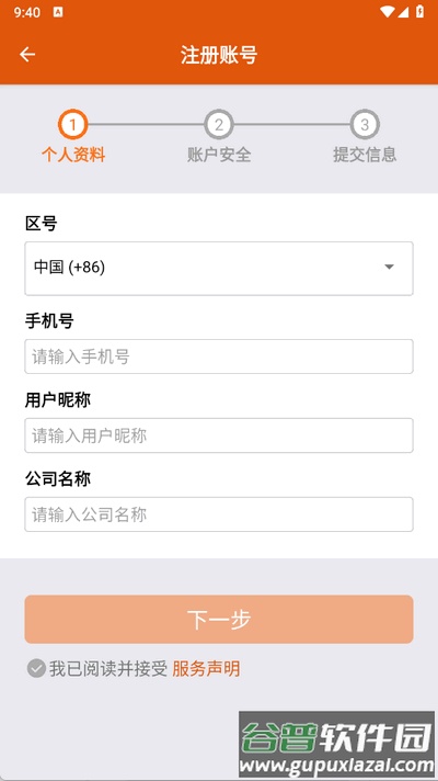 2、完整填写个人资料与账户安全信息,随后提交即可完成注册。