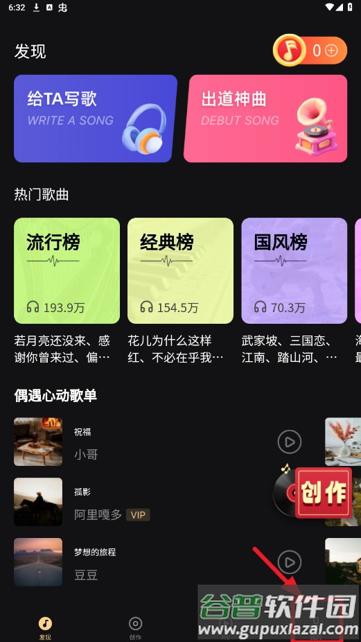 打开魔法成歌app,点击我的。