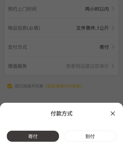 随后准确填写寄件地址、收件人信息、预约上门时间及物品详情;付款方式提供寄付与到付两种选择,即寄件人付款或收件人付款。