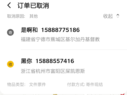 订单取消后发现,付款方式显示为寄件现结,费用可能直接交给快递员;但应用内的优惠券可向快递员出示并使用。