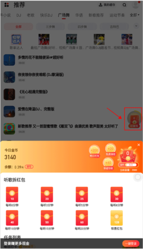 2、聆听音乐一段时间即可收获金币,金币可兑换现金,提现至个人账户。
