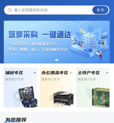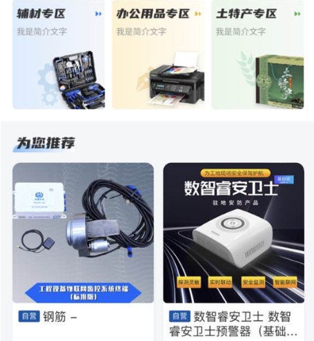 平台设置了清晰的商品专区,例如辅材专区、办公用品专区等。