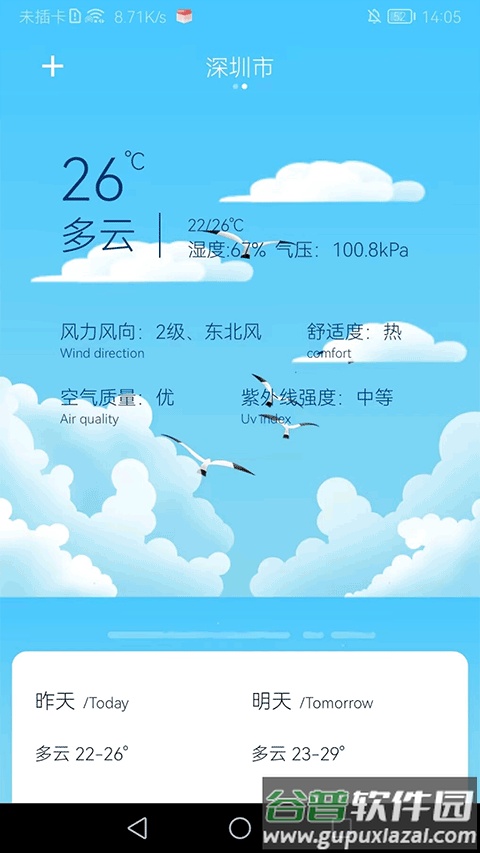 6. 在天气预报页面滑动屏幕,即可查看所选城市的天气状况。