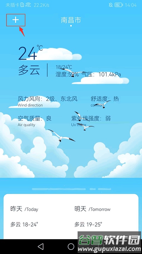 3. 如需查看特定城市天气,可点击左上角“+”进入城市管理。