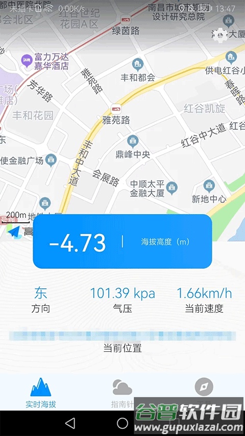 2. 返回软件实时海拔页面,即可查看当前所处的位置、方向、气压等具体信息。