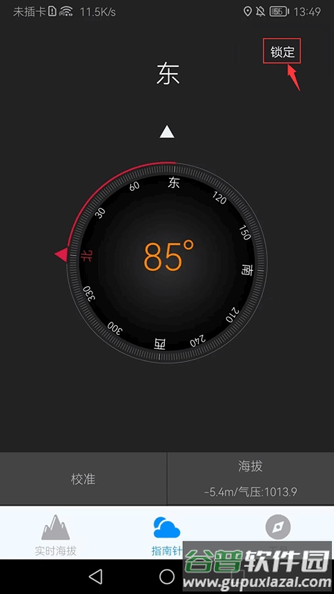 4. 指南针指向会随用户移动实时变化,若需固定方向,可点击右上角“锁定”按钮。